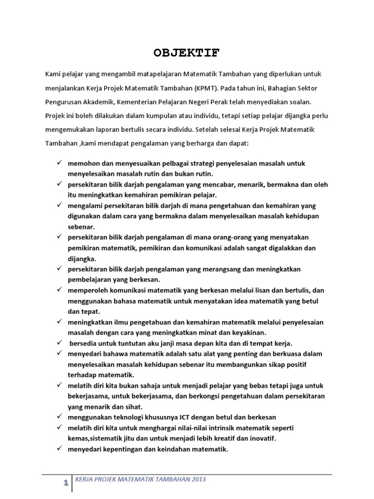 Objektif Penutup Refleksi Untuk Kerja Projek Matematik Tambahan Pdf